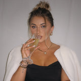 The speakeasy, roaring with vocals from Sinatra, Holiday, and Armstrong. The ambience of the candlelight. Sipping on champagne while your satin gown is hugging your figure perfectly. Draped in pearls, diamonds, and love. You and the girls are laughing, dancing, and living your best life… The Monroe necklace tends to have that effect on people.